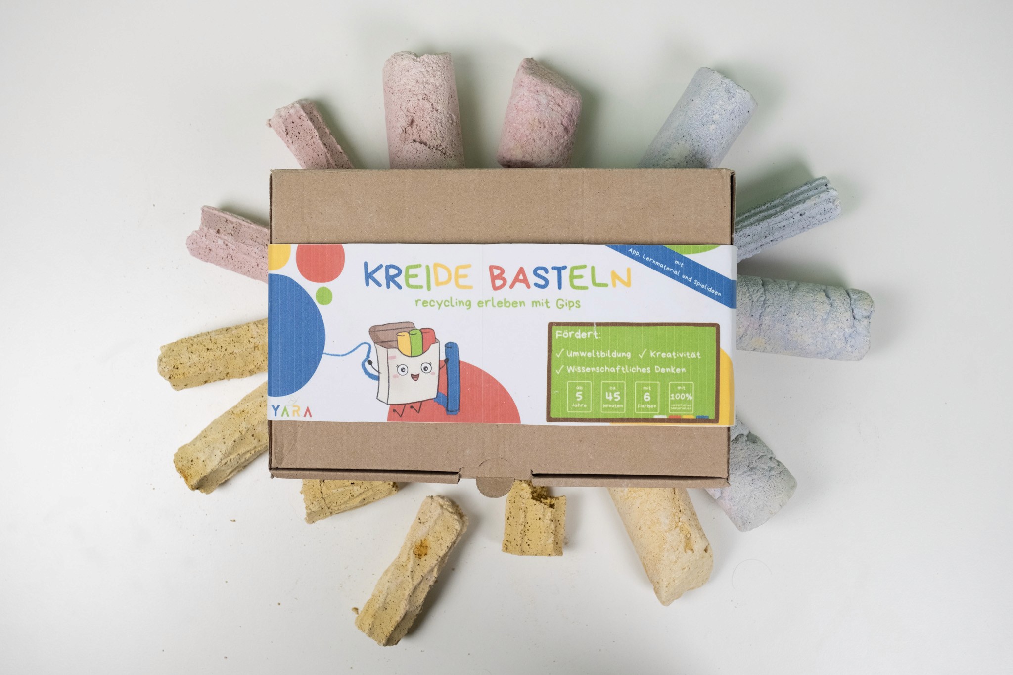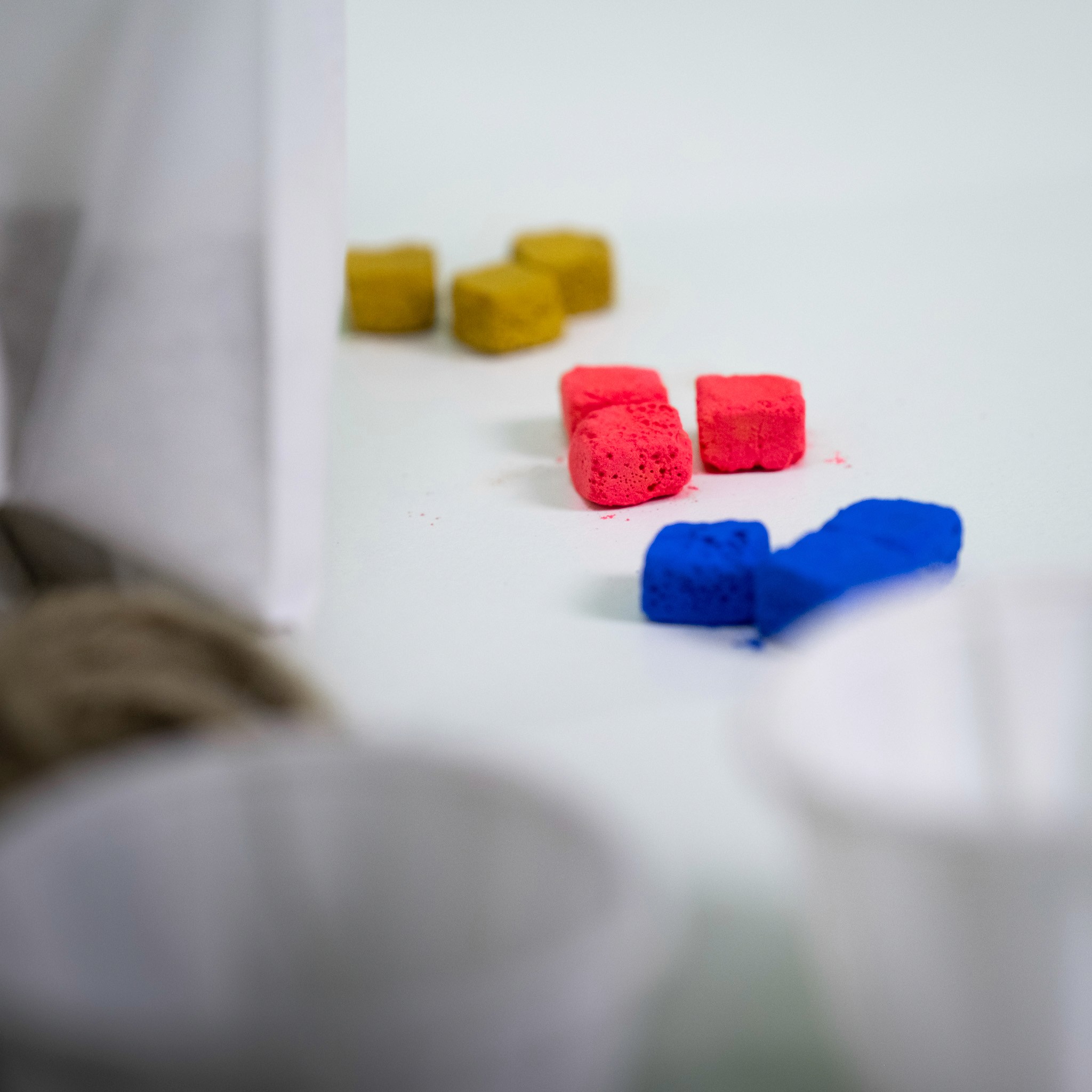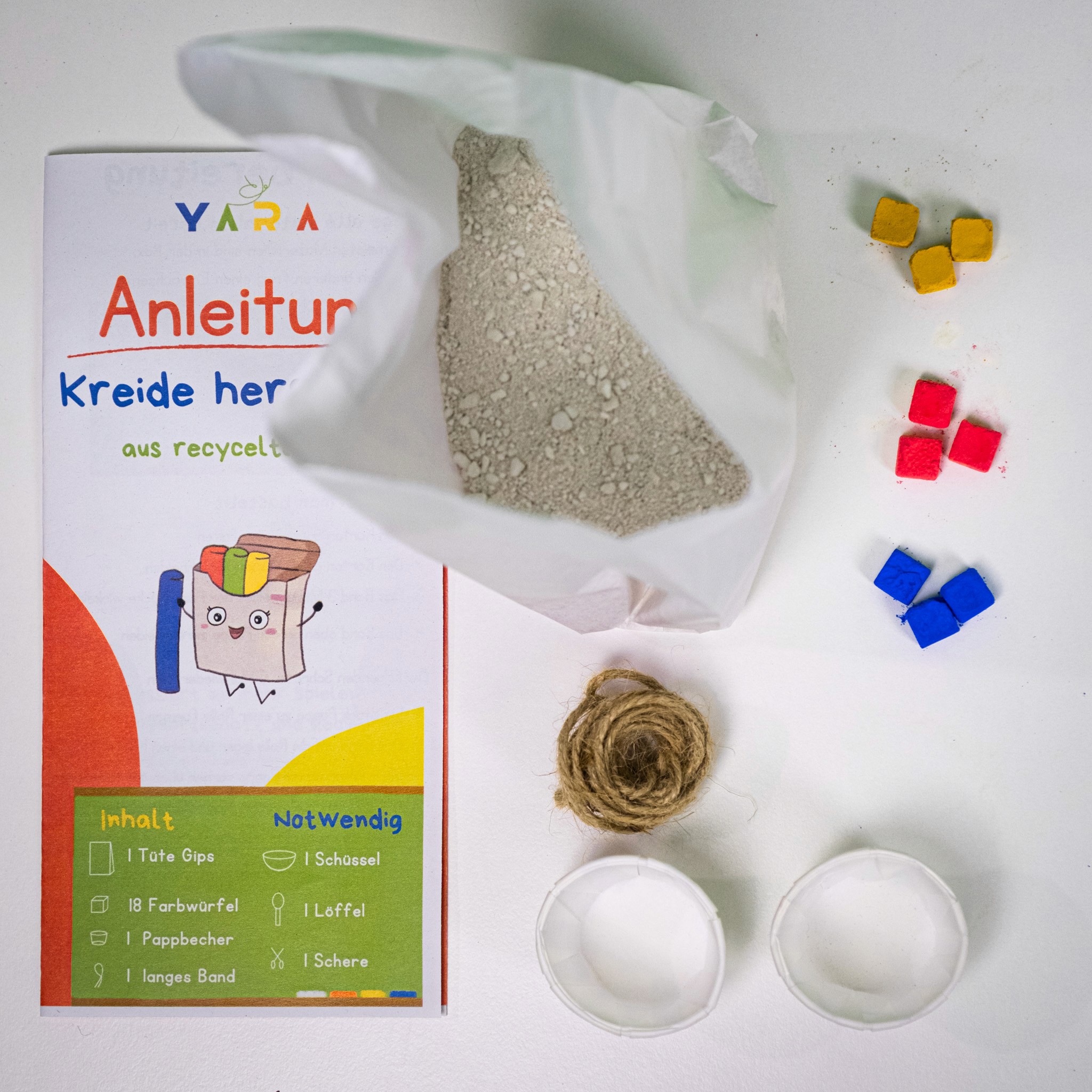 Mische Gips und Farben, gieße die Mischung in Formen und beobachte, wie die Kreide entsteht